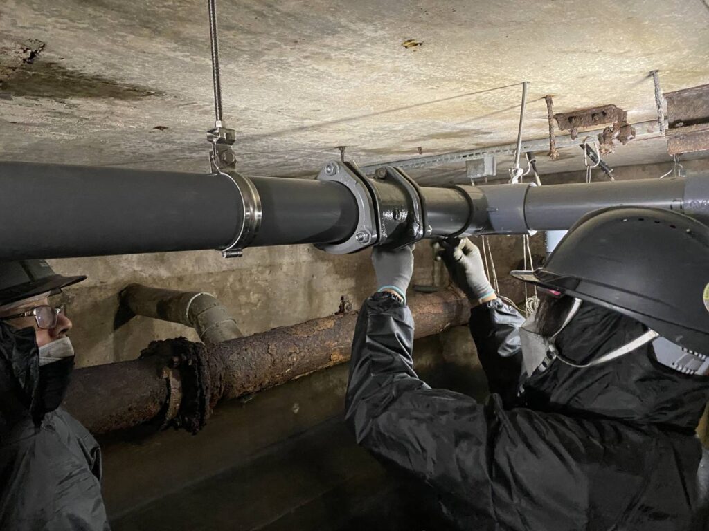 地下ピット内の配管修理