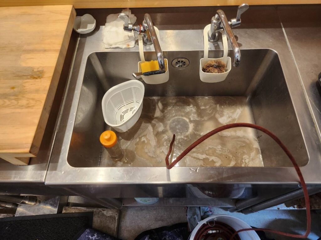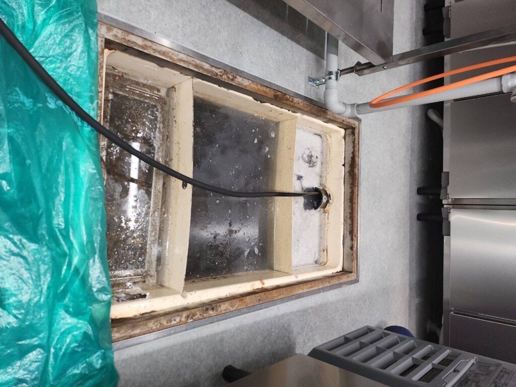 厨房内の排水管清掃を行いました。