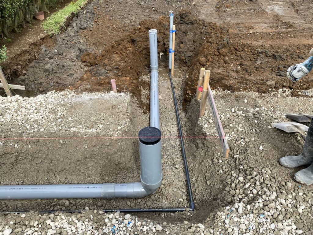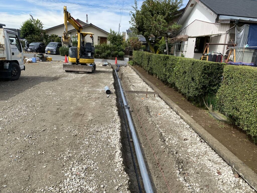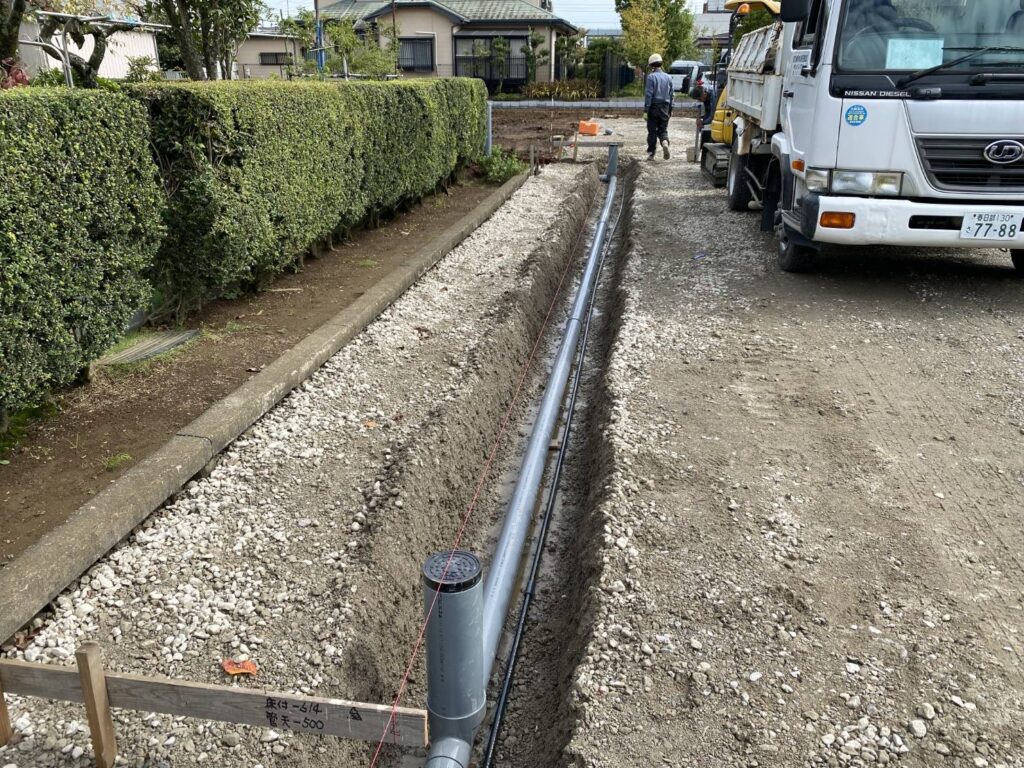 建物から道路間の配水管敷設工事を行いました。